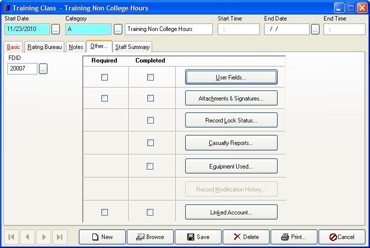 (If the dialog box is not already populated with data) Create a new training record.
