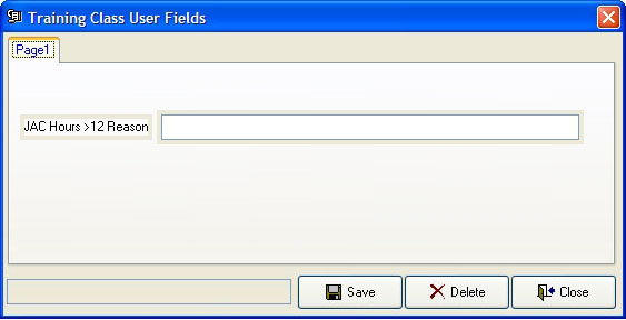 The Training Class User Fields dialog box appears.