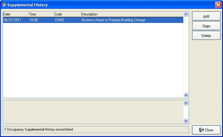 The Occupancy Supplemental History Detail dialog box appears for that item.