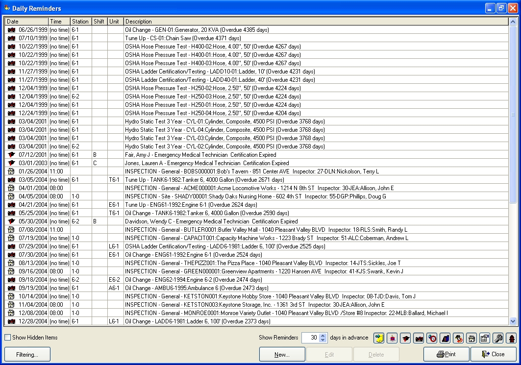 icon.The corresponding reminders are filtered out of the list in the dialog box, until only the notes reminders appear.