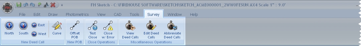 The Survey menu contains functions that let you enter the metes and bounds derived from legal descriptions.