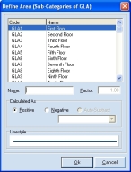 The Define Area (Sub-Categories of GLA) dialog box appears.