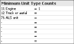 Caution: The unit types that appear in Minimum Unit Type Counts depend on specifications you made on the Admin tab.