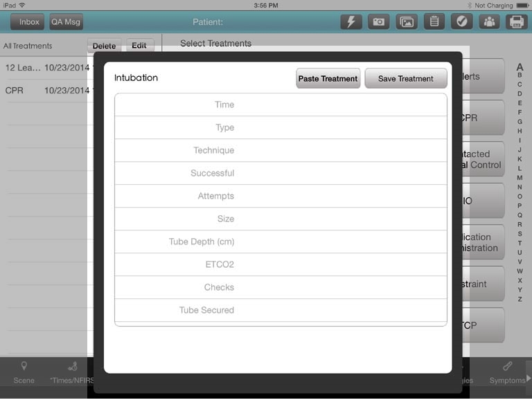 A list of possible treatments appears on the right side of the screen, and a summary of any treatments you previously performed appears on the left side of the screen.